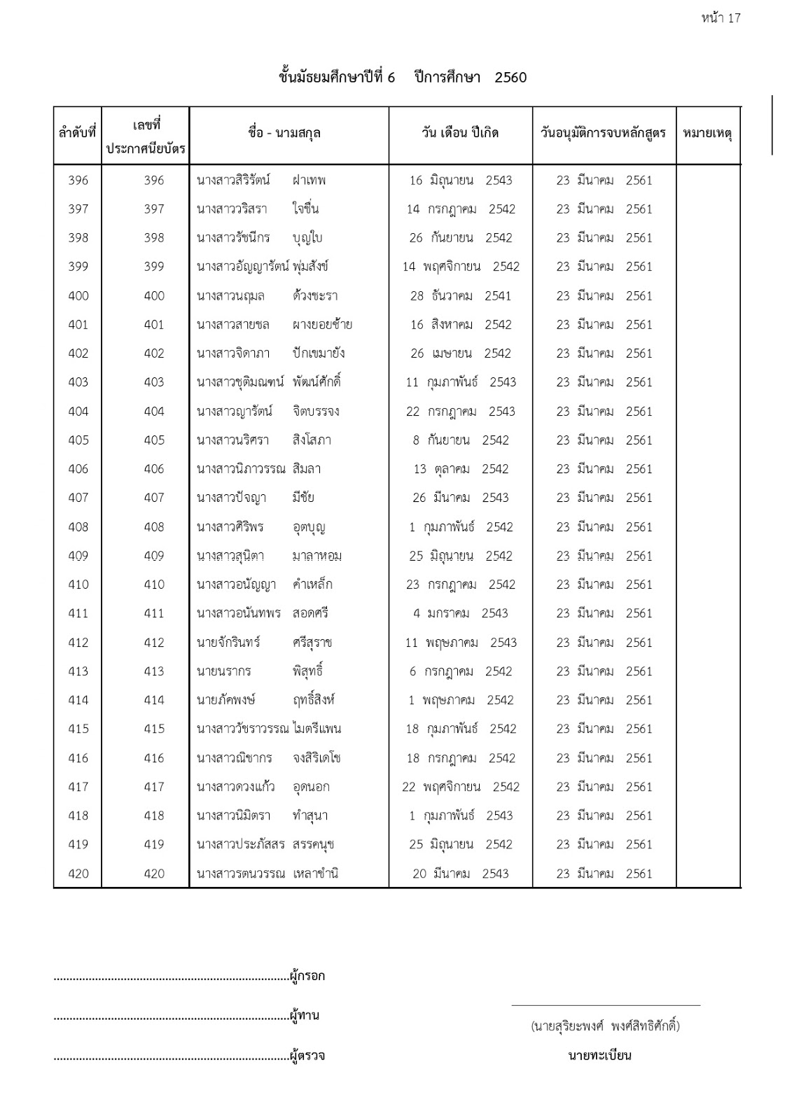 จบการศึกษา ม.3 ปีการศึกษา 2560